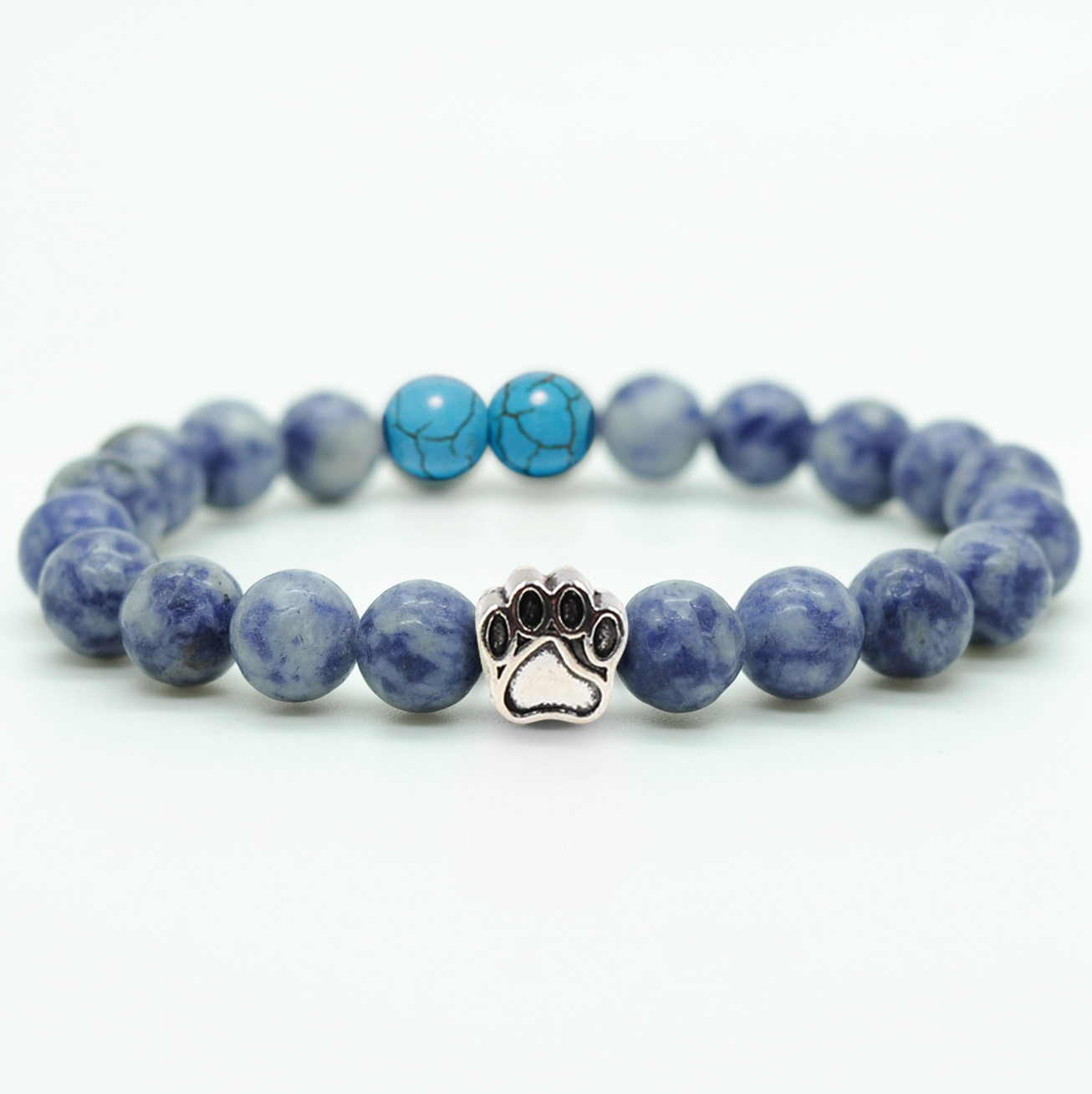 Multi-color 8MM Round Natural Gemstone Bracelet Dog Paw Stone Jewelry for Men Women