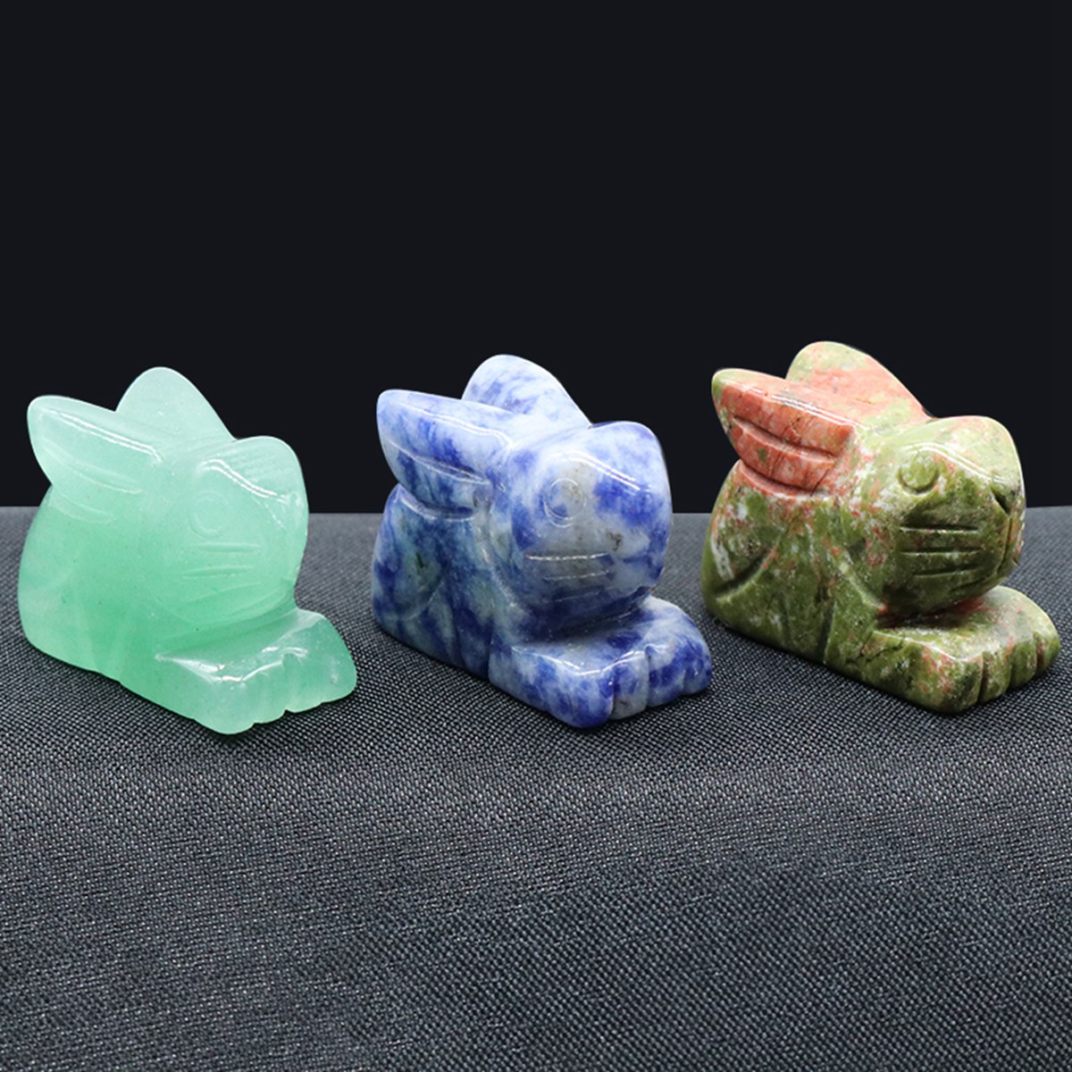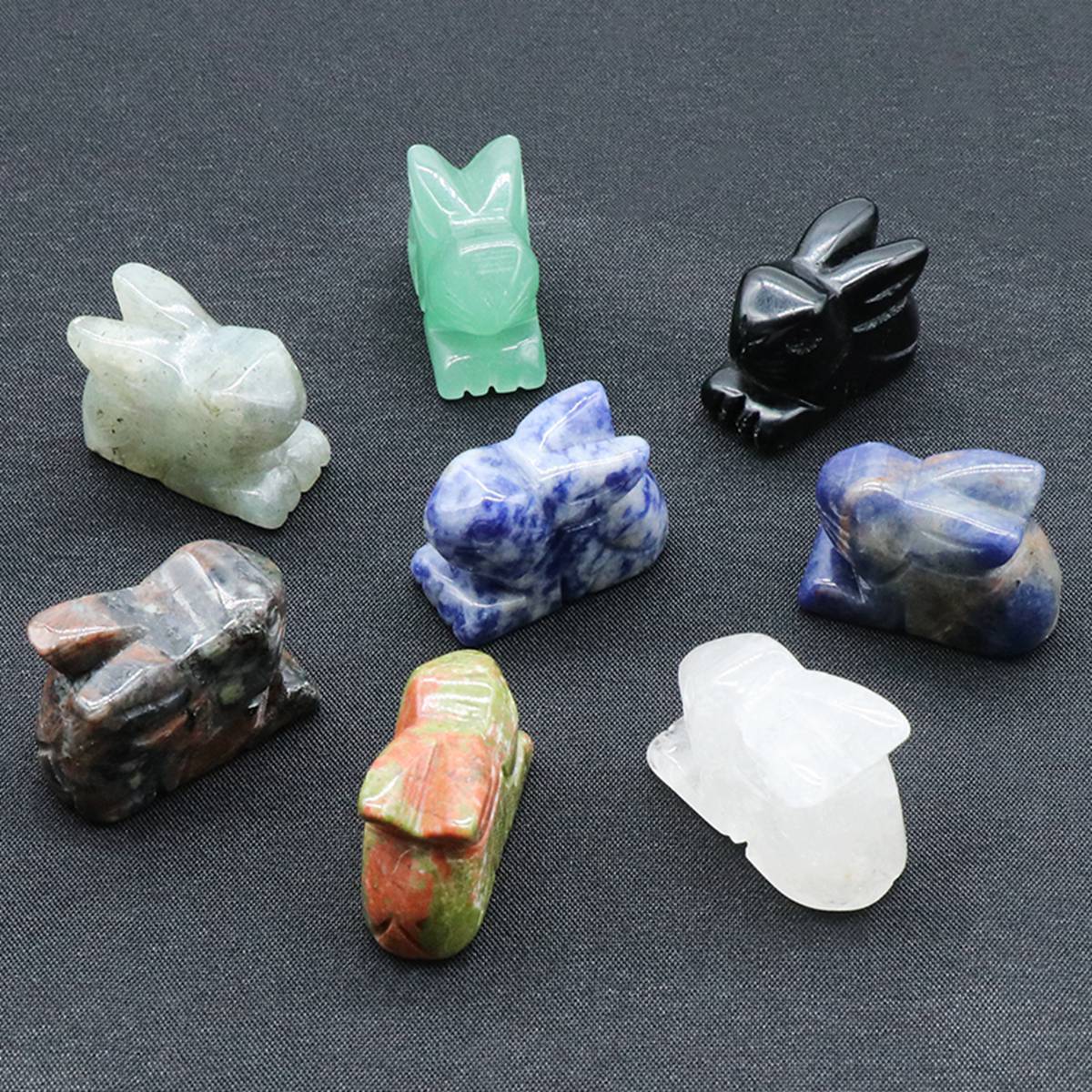 Handmade Craved 1.0Inch Rabbit Gemstone Pendant 7 Chakra Stone Key Chain