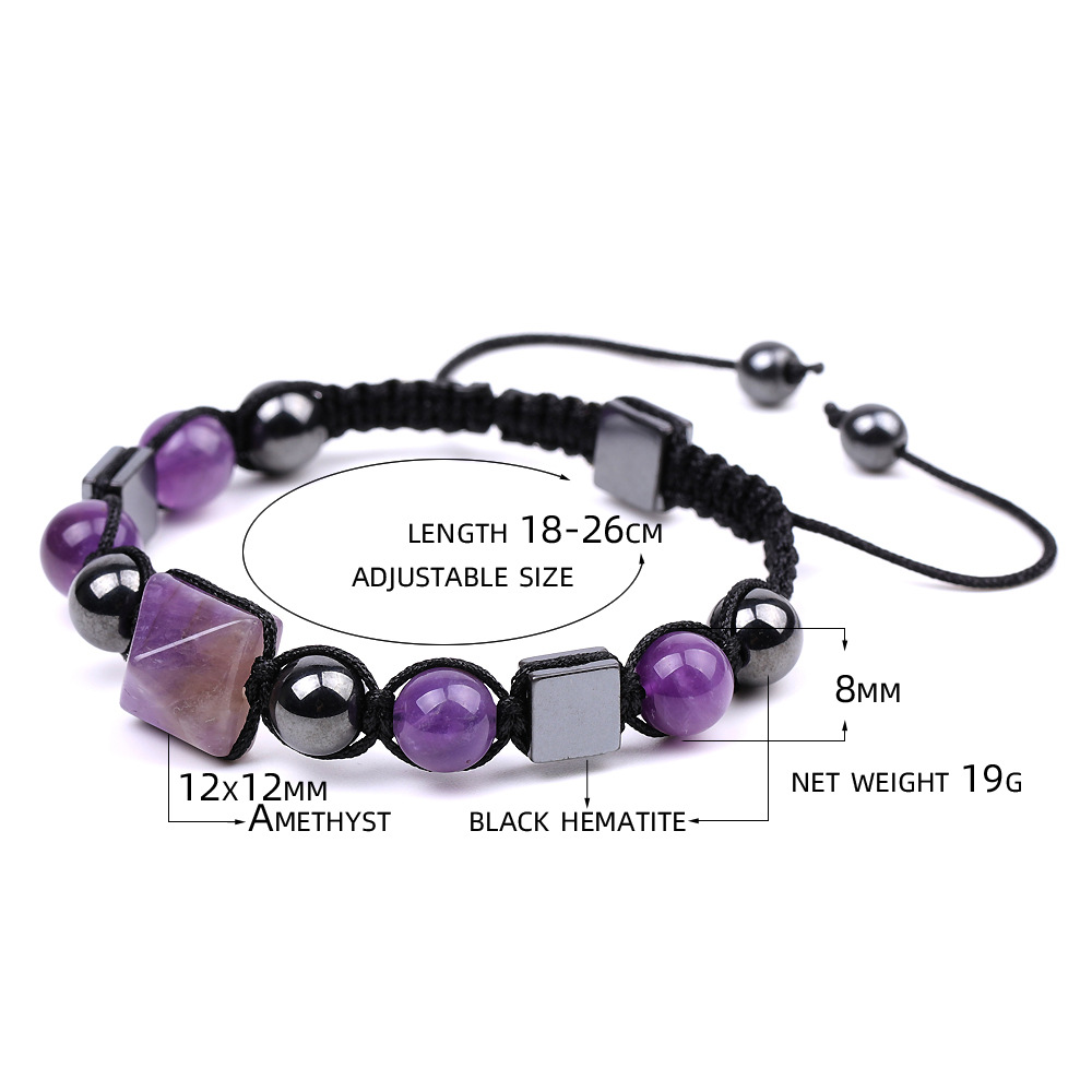 Handmade Woven Pyramid Gemstone Bead Bracelet Adjsutable Handmade Healing Crystal Meditation Relax Anxiety For Women