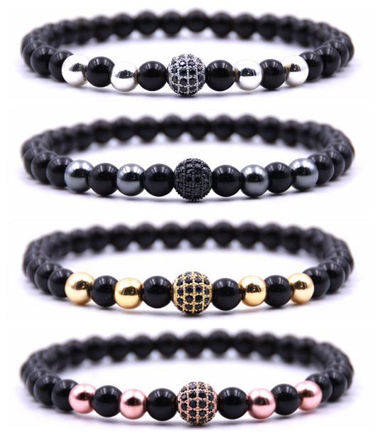 CZ Rhinestone 6MM Black Onyx Beads Bracelet