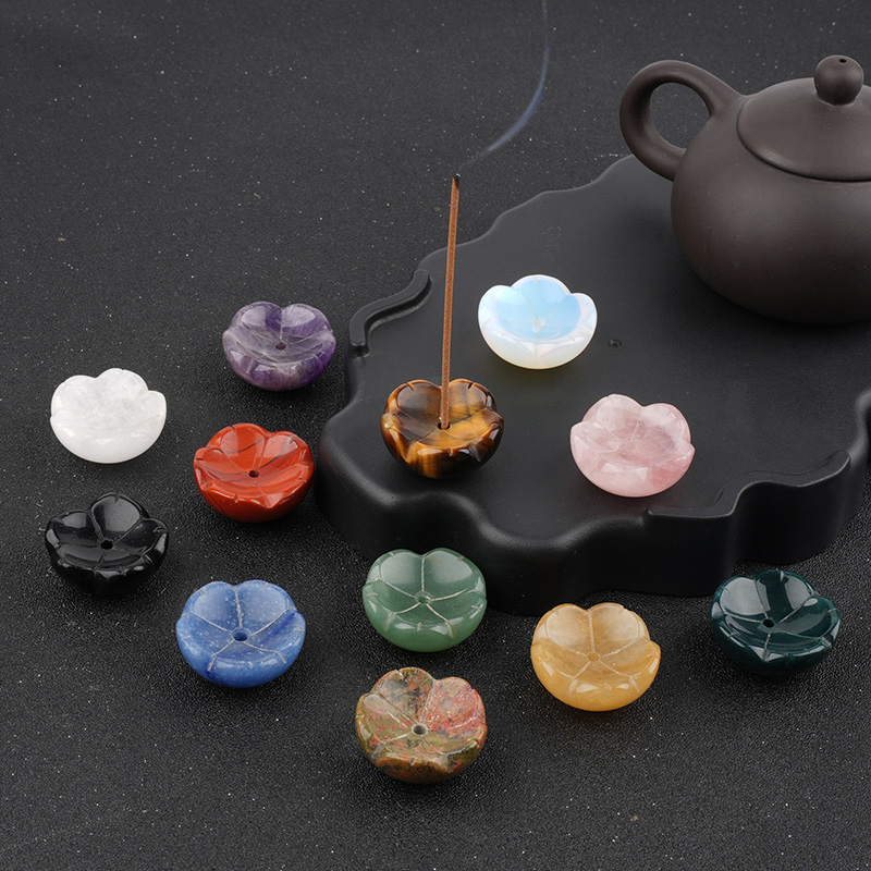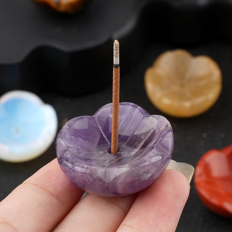 Gemstone 32mm Flower Base Used For Incense Handmade Craved